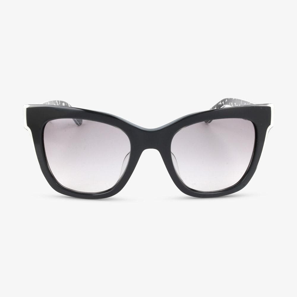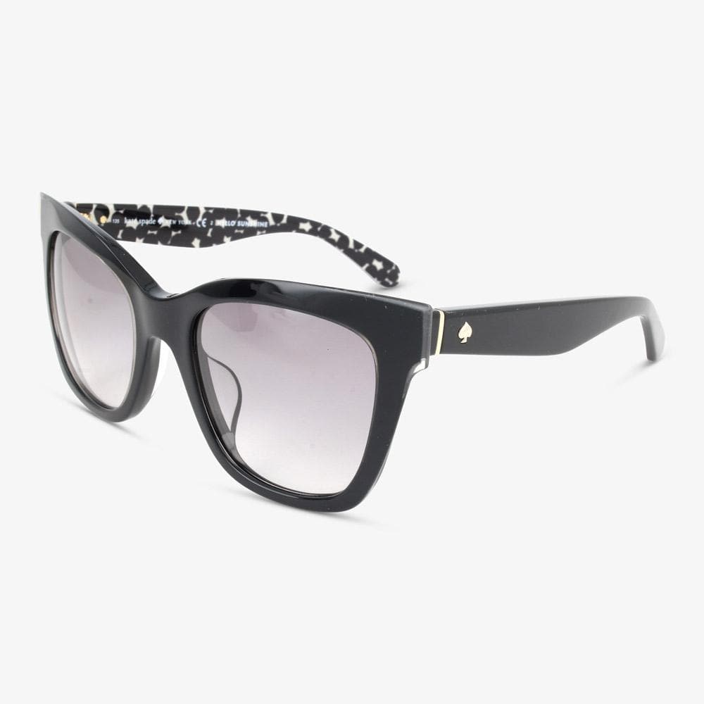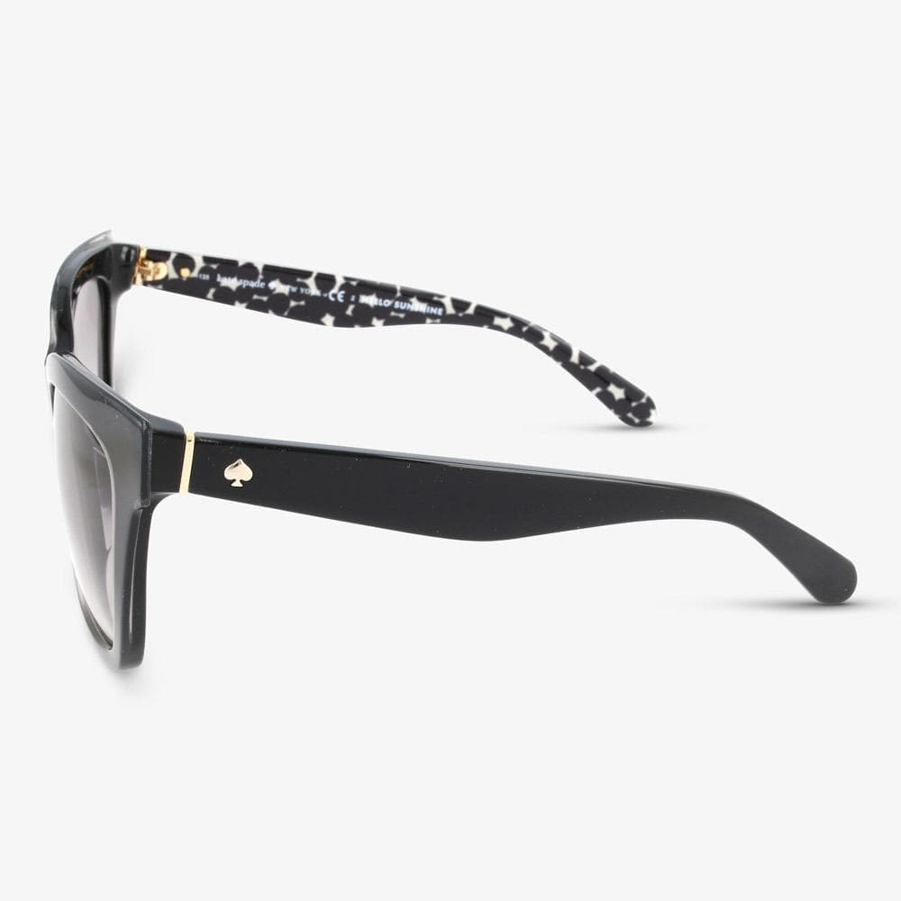 Muss Ihre Sonnenbrille ersetzt werden? Oder möchten Sie jemand eine Sonnenbrille schenken? Dann könnte diese Kate Spade EMMYLOU-S S30 Damen Sonnenbrille eine gute Option sein.Diese schöne Sonnenbrille hat einen Squareförmigen Rahmen in der Farbe Schwarz. Die Beschreibung der Rahmenfarbe der Marke lautet Black Grey Pattern. Die Farbe der Linsen aus Acetat ist Grau mit ein Gradient Effect. Die Linsen haben eine Linse der 2 - mittel Sonnenfinsternis. Die "Mode" -Farbbeschreibung, die die Gläser der Sonnenbrille haben, ist Grey Sf. Diese Damen Sonnenbrille der Top-Marke bietet 100% UVA- und UVB-Schutz. Sind die Gläser dieser Sonnenbrille polarisiert? Nein. Diese Kate Spade Sonnenbrille hat die folgenden Größen. Eine Glasbreite von 51 mm mit einem Stegbreite von 21 mm. Die Bügellänge der Sonnenbrille beträgt 135 mm. Die vollständige Beschreibung der Modellnummer dieser Kate Spade Sonnenbrille lautet KSP SUN EMMYLOU/S S30 51 21 135.