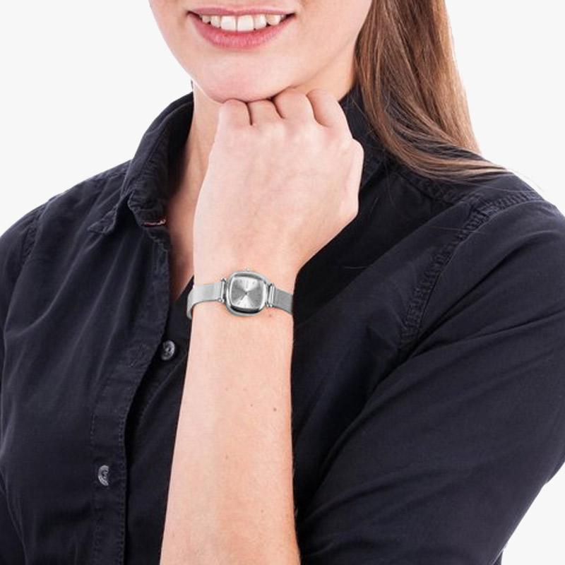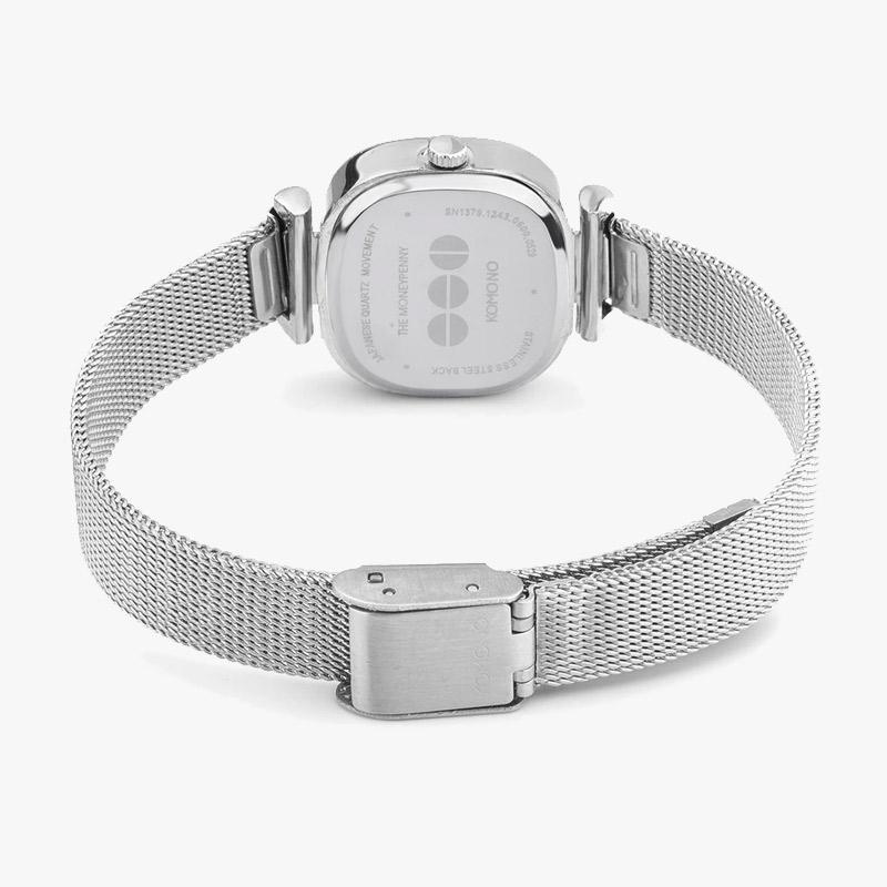 Muss lhre Uhr ersetzt werden? Oder möchten Sie jemandem eine Uhr schenken? Dann könnte diese Komono Moneypenny Royale KOM-W1240 Damenuhr eine gute Option sein.Die Silber Farbe des Stahl Gehäuses fällt auf und passt perfekt zur Silber Farbe des Zifferblatts. Das Gehäuse hat einen Durchmesser von 24 mm und eine Dicke von 8 mm. Diese Komono Damenuhr hat die folgenden Funktionen; 12--Std-Anzeige.