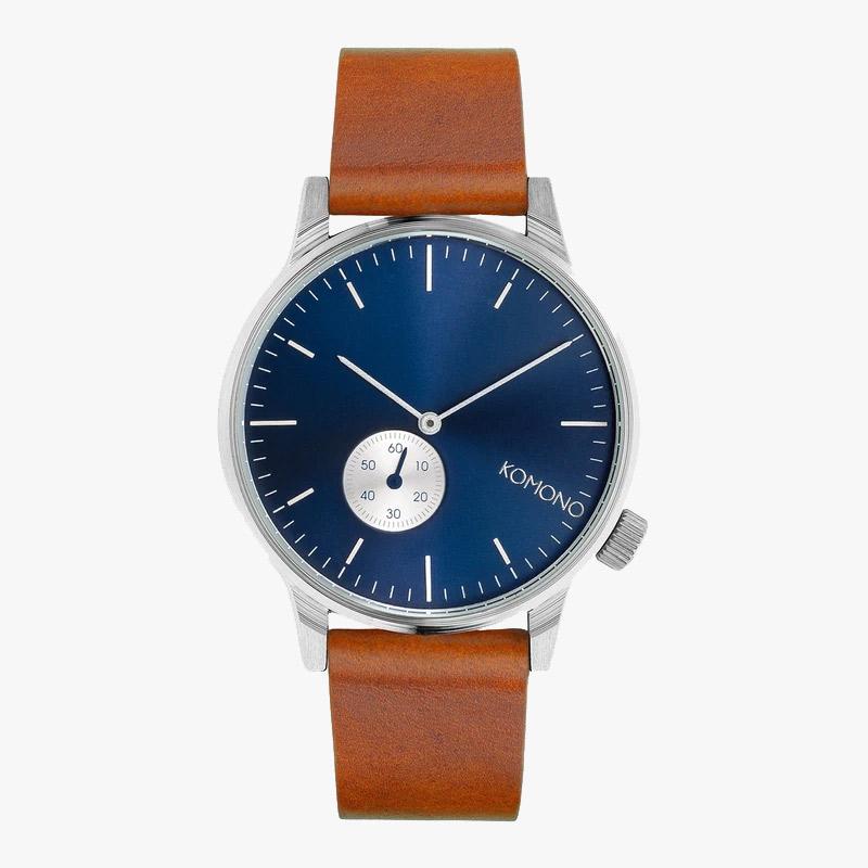 Auf der Suche nach einer Komono Herrenuhr? Dann schauen Sie sich diese schöne Komono Winston Subs KOM-W3003 Uhr an!Die Silber Farbe des Stahl Gehäuses fällt auf und passt perfekt zur Blau Farbe des Zifferblatts. Das Gehäuse hat einen Durchmesser von 42 mm und eine Dicke von 9 mm. Diese Komono Herrenuhr hat die folgenden Funktionen; 12--Std-Anzeige.
