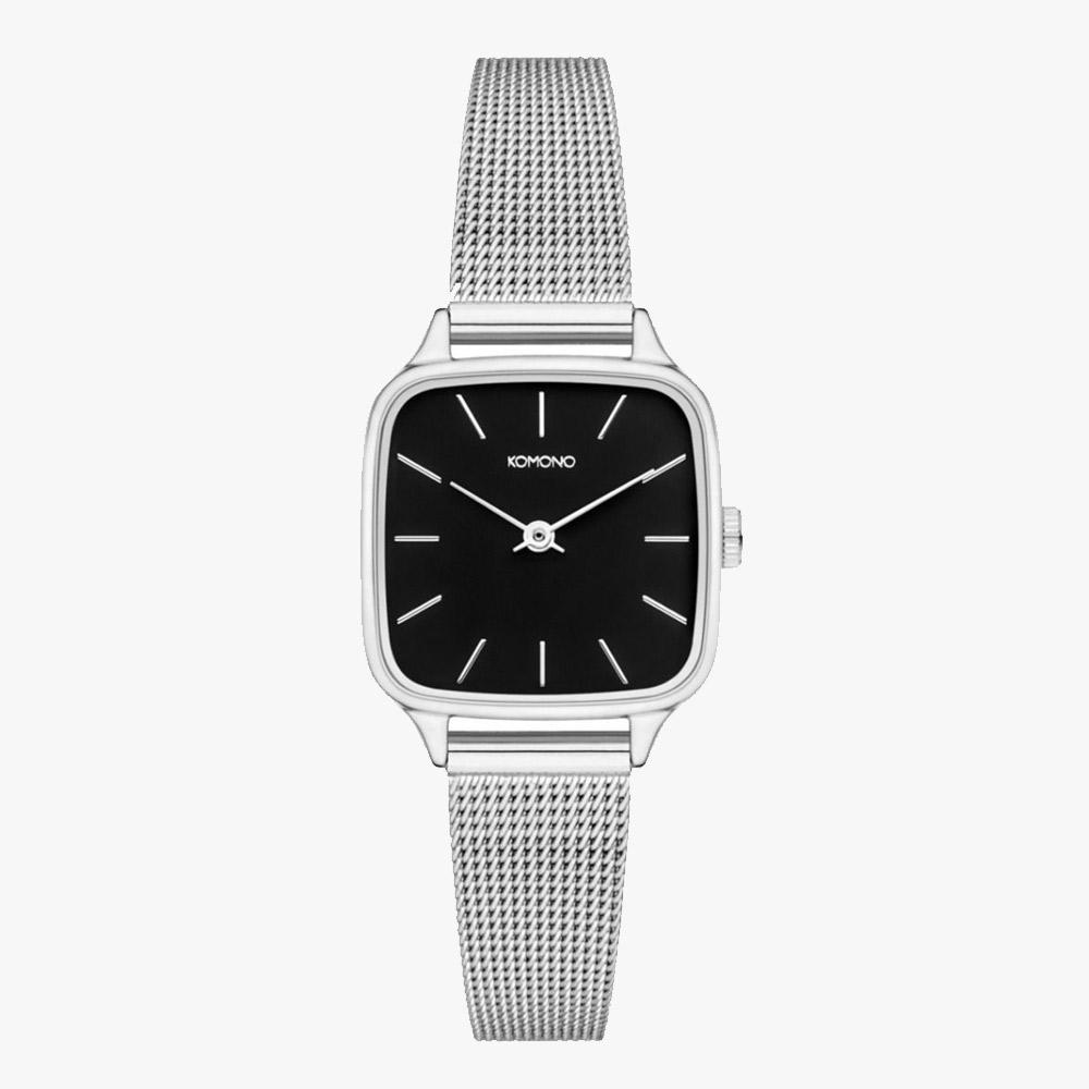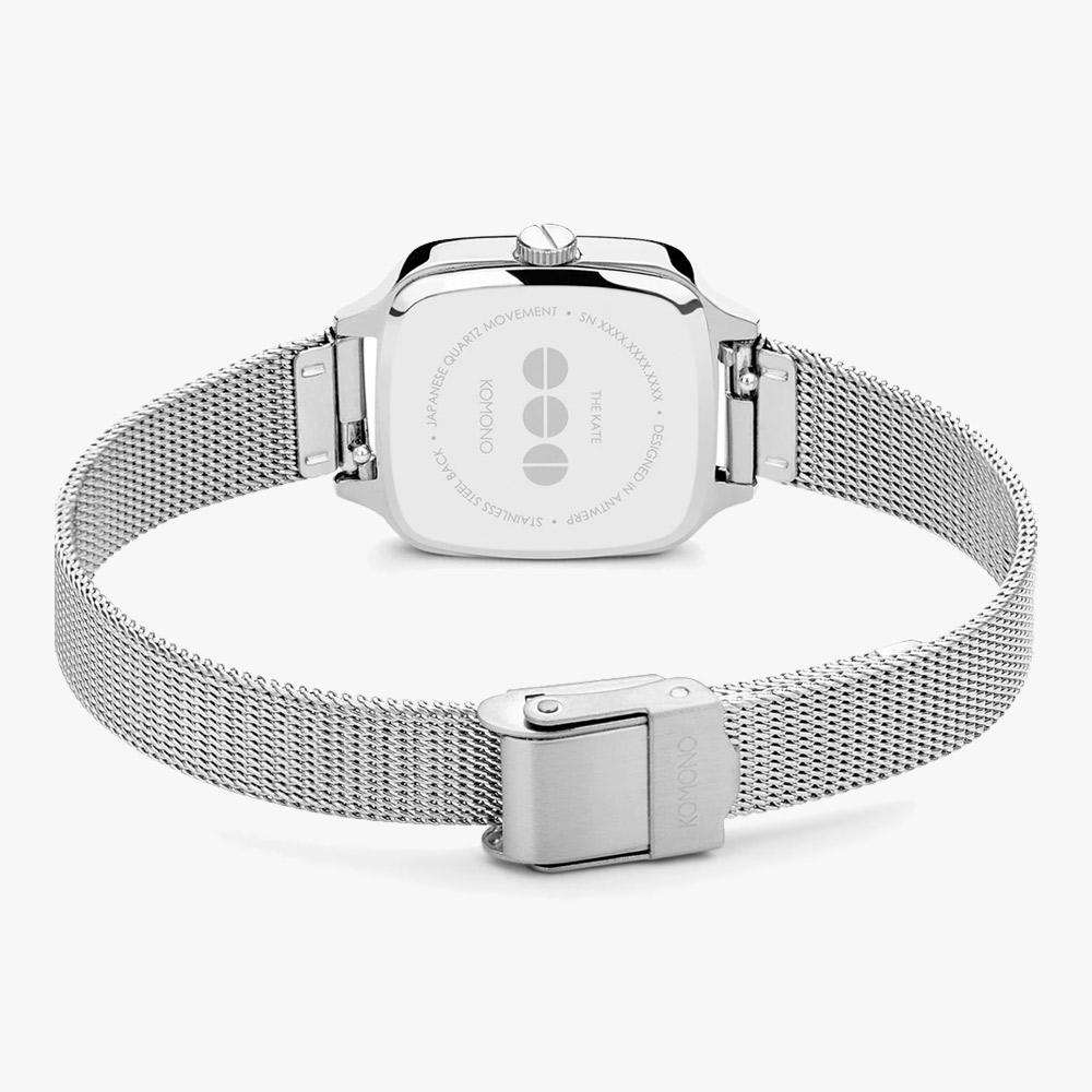 Muss lhre Uhr ersetzt werden? Oder möchten Sie jemandem eine Uhr schenken? Dann könnte diese Komono Kate Royale KOM-W4256 Damenuhr eine gute Option sein.Das Edelstahl Band in der Farbe Silber dieses Modells passt super bei die Silber Farbe des Gehäuses aus Stahl. Das Gehäuse hat einen Durchmesser von 32 mm und eine Dicke von 7 mm. In das Gehäuse finden wir eine zuverlässige Quarz Uhr, welche unter das Schwarz Zifferblatt gesteckt ist. Das Gehäuse ist mit Mineralglas und hat eine Wasserbeständigkeit von 3 ATM. Diese wunderschöne Komono Damenuhr hat die folgenden Funktionen;12--Std-Anzeige