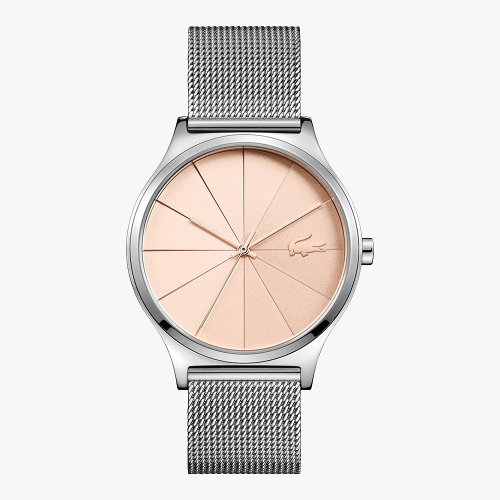Dass schlicht und einfach nicht langweilig sein muss, beweist diese Lacoste LC2001042 Nikita Damenuhr. Die silberne Farbe des Gehäuses in Kombination mit dem roségoldfarbenen Zifferblatt dieser Lacoste LC2001042 Nikita-Uhr ist wirklich wunderschön. Das Zifferblatt ist mattiert, die Indexe sind glänzend und laufen zum Herzen des Zifferblatts, wo Sie auch die roségoldfarbenen Zeiger und das Lacoste-Logo finden. Das silberfarbene Stahlgitterband vervollständigt dieses super feminine Modell. Das Armband schließt mit einem Hakenverschluss und lässt sich einfach schrittweise anpassen, sodass das Modell perfekt passt. Die Lacoste Uhr hat eine Wasserdichtigkeit von 3 ATM. Diese super stylische Lacoste-Uhr wird mit ein Gebrauchsanweisung in einer Lacoste-Markenbox geliefert. Mit einer 2-jährigen Markengarantie.