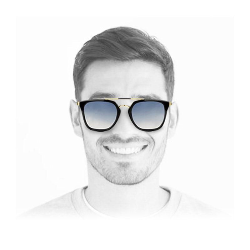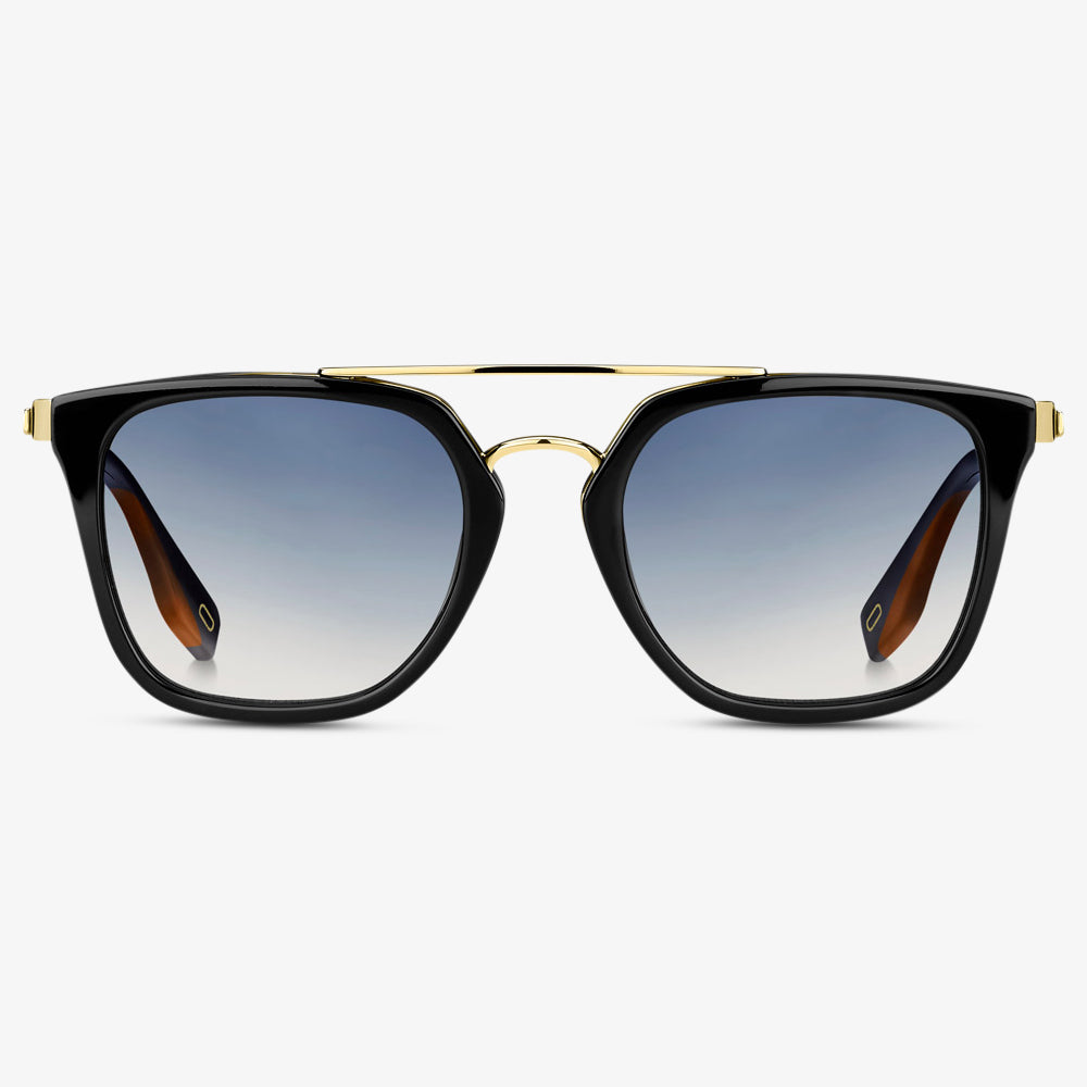 Muss Ihre Sonnenbrille ersetzt werden? Oder möchten Sie jemand eine Sonnenbrille schenken? Dann könnte diese Marc Jacobs MARC 270-S 807 Herren Sonnenbrille eine gute Option sein.Diese schöne Sonnenbrille hat einen Squareförmigen Rahmen in der Farbe Schwarz. Die Beschreibung der Rahmenfarbe der Marke lautet Black. Die Farbe der Linsen aus CR-39 ist Blau mit ein Gradient,ein Spiegel Effect. Die Linsen haben eine Linse der 2 - mittel Sonnenfinsternis. Die "Mode" -Farbbeschreibung, die die Gläser der Sonnenbrille haben, ist Blue Shaded Gold Mirror. Diese Herren Sonnenbrille der Top-Marke bietet 100% UVA- und UVB-Schutz. Sind die Gläser dieser Sonnenbrille polarisiert? Nein. Diese Marc Jacobs Sonnenbrille hat die folgenden Größen. Eine Glasbreite von 51 mm mit einem Stegbreite von 21 mm. Die Bügellänge der Sonnenbrille beträgt 145 mm. Die vollständige Beschreibung der Modellnummer dieser Marc Jacobs Sonnenbrille lautet MARC 270-S 807 51 21 145.