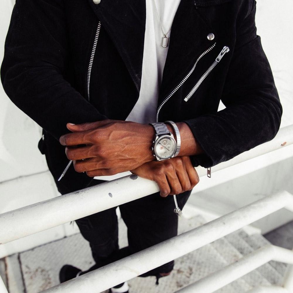 Auf der Suche nach einer MVMT Herrenuhr? Dann schauen Sie sich diese schöne MVMT Element Chrono Dark Gunmetal 28000048-D Uhr an!Das Edelstahl Band in der Farbe Grau dieses Modells passt super bei die Grau Farbe des Gehäuses aus Edelstahl. Das Gehäuse hat einen Durchmesser von 44 mm und eine Dicke von 10 mm. In das Gehäuse finden wir eine zuverlässige Quarz Uhr, welche unter das Grau Zifferblatt gesteckt ist. Das Gehäuse ist mit Mineralglas und hat eine Wasserbeständigkeit von 5 ATM. Diese wunderschöne MVMT Herrenuhr hat die folgenden Funktionen;24--Std-Anzeige, Chronograph