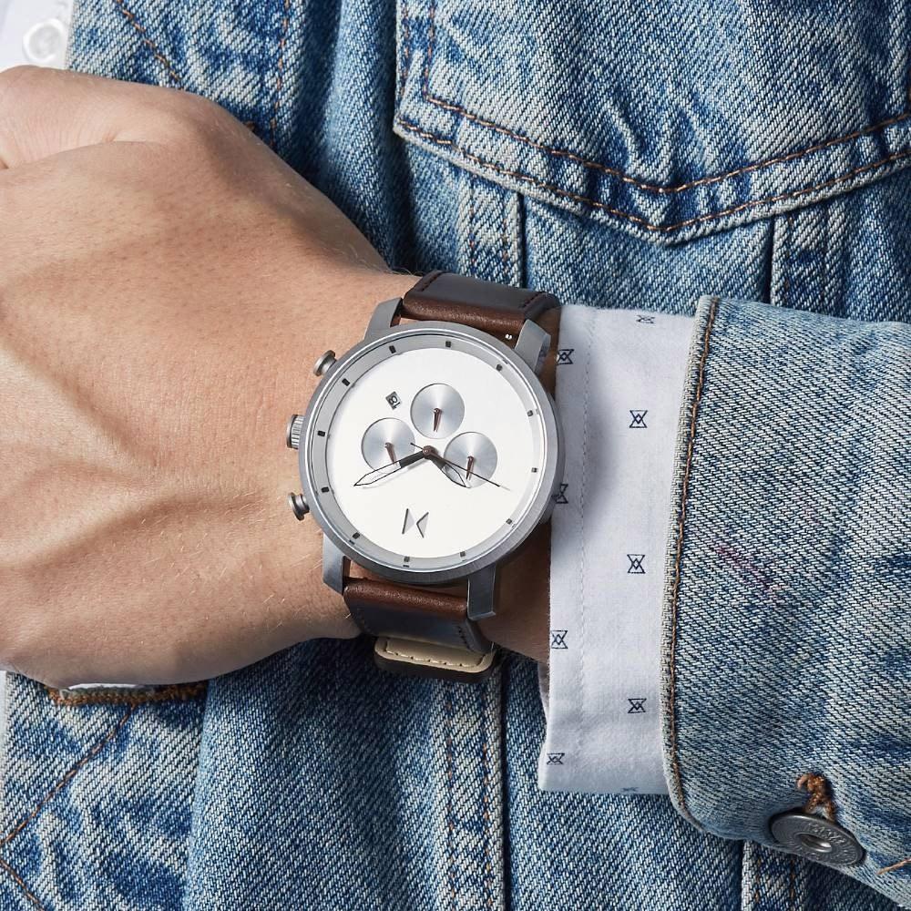 MVMT Chrono 45 Silver Brown D-MC01-SBRL Herrenuhr 45 mm